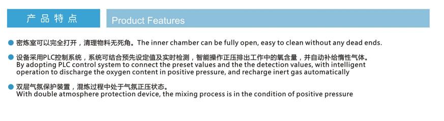 氣氛保護密煉機(鈦合金密煉機)應用范圍:鈦合金/銅合金/鋁合金粉末及高比重粉末的混煉等等。